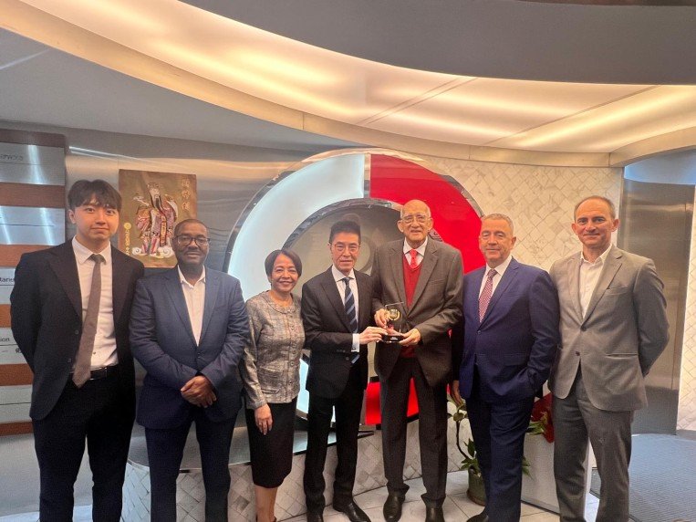 Bong Kwan Teo, left, a partner at Wong Jin Ne & Teo, receives the Malaysia Patent Litigation Firm of the Year award from Eunice Yang, head of the Cross-border Intellectual Property Center at Zhiheng Law Firm in Shenzhen.