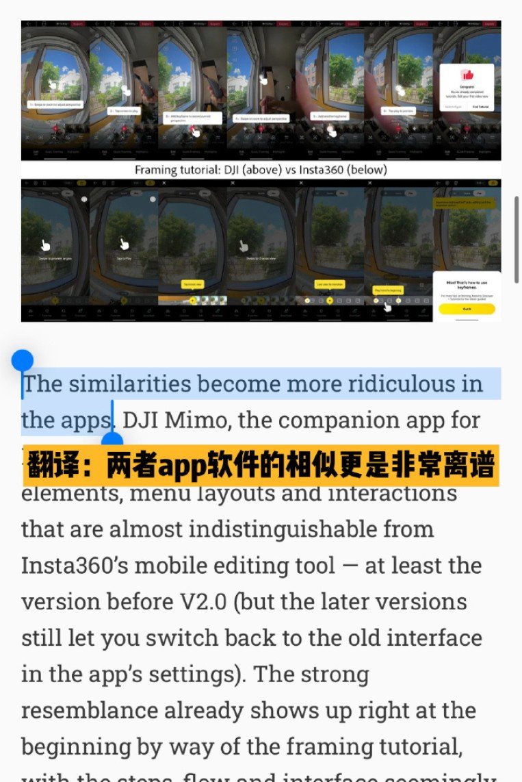 There are notable similarities in product descriptions, exterior design and app interfaces between the two companies, as reflected in DJI’s Osmo series.