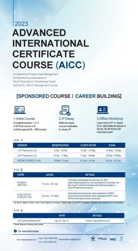Registration for the AICC’s IP Panorama 2.0 course is currently open on the KIPO Academy website (kipoacademy.kr) until May 7. Through the program, participants will learn more about IP issues from a business perspective, and after successfully completing the course, they will receive an AICC certificate enabling them to progress to the special DL-450 course for the AICC program.